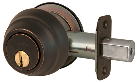 The Master Lock No. DSH0712PKA4 features a double cylinder deadbolt with interior and exterior keyway. The deadbolt is four way adjustable for 2-3/8in or 2-3/4in backset, square, or rounded corners. The deadbolt offers ANSI Grade 1 performance for exterior locking applications. The aged bronze finish provides a sleek appearance. Operates with KW1 cylinder.