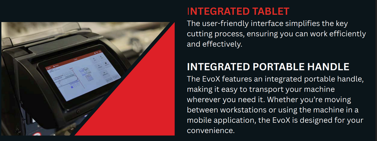 - Built-in tablet interface walks you through the cutting process