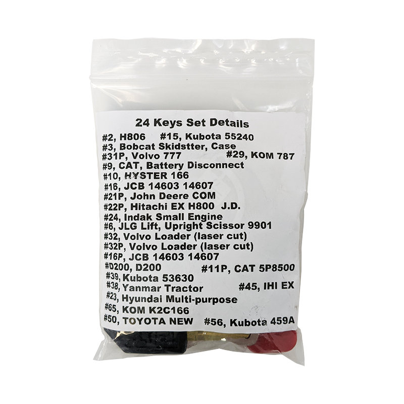 The Precut Construction Equipment Key Set | 24 Keys is an essential solution for equipment owners, fleet managers, and locksmith professionals who need reliable replacement keys for heavy machinery. Crafted from durable materials for long-lasting performance, this key set is designed for immediate use with no cutting required. Covering a wide range of common construction equipment keys, it supports efficient key replacement and minimizes downtime on job sites. Whether for professional fleet maintenance or backup key needs, this 24-key set offers convenience, reliability, and readiness in one organized solution.