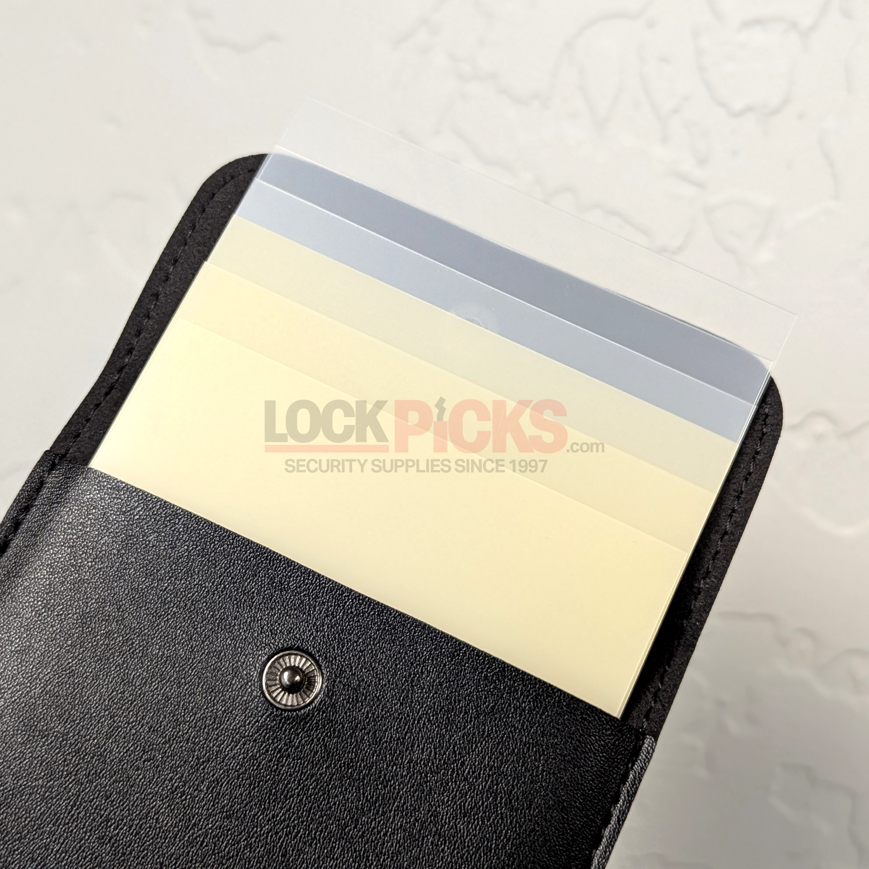 The Pro Door Latch Shim Tool Kit is a must-have for locksmiths, first responders, and security professionals who need a reliable way to open standard doors without damaging the lock or frame. This 6-piece lock bypass set is crafted from premium-grade Super Mica, a flexible and ultra-durable material that outperforms traditional shim steel and plastic card tools. Each kit includes six reusable shims in two precision thicknesses—three at .015" and three at .020"—giving you the versatility to tackle a wide range of residential and commercial door types.