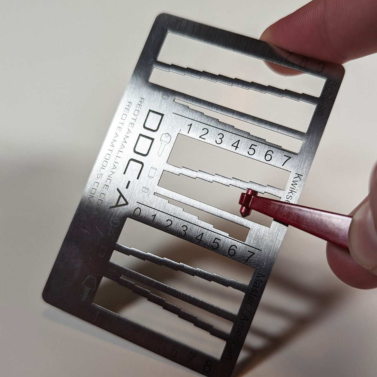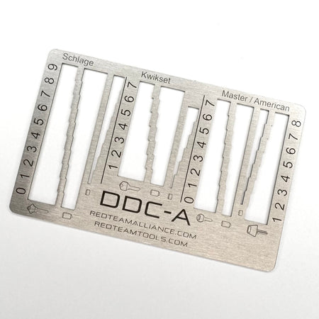 The RTT Devious Decoder Card provides locksmiths and security professionals with a quick and efficient way to decode locks in the field. Designed specifically for the North American market, it delivers accurate spacing and depth information to simplify the decoding process. Its slim credit-card profile makes it easy to store in a wallet or carry discreetly, ensuring it is always available when needed. Made from durable material, this tool is a reliable choice for both training and professional use.