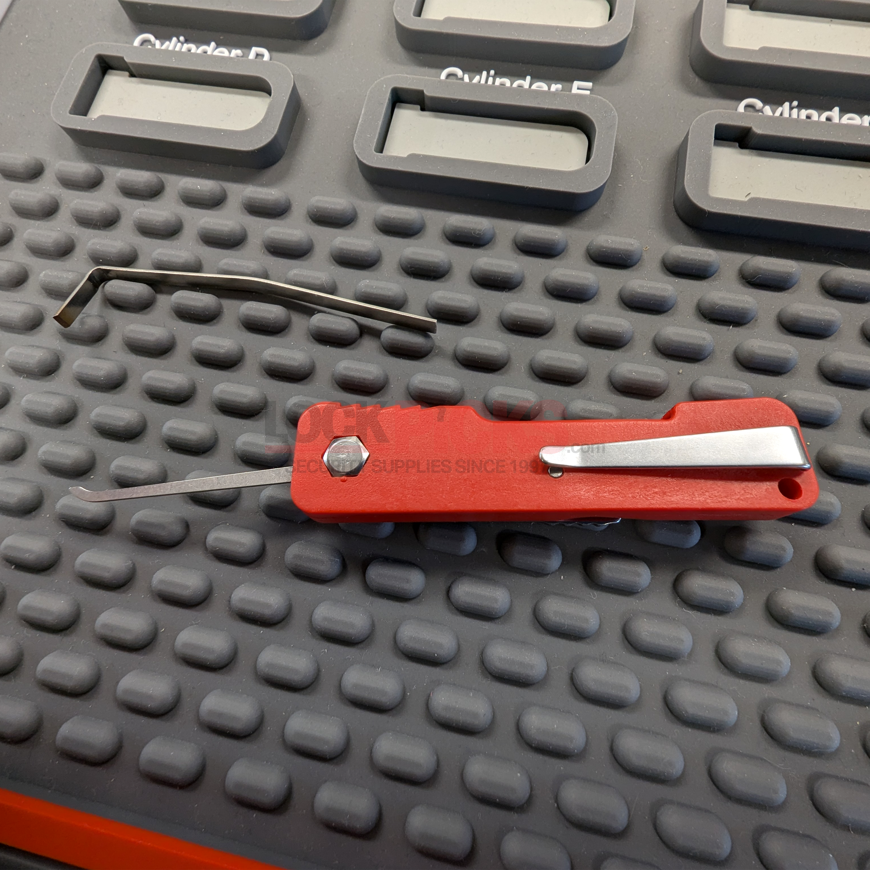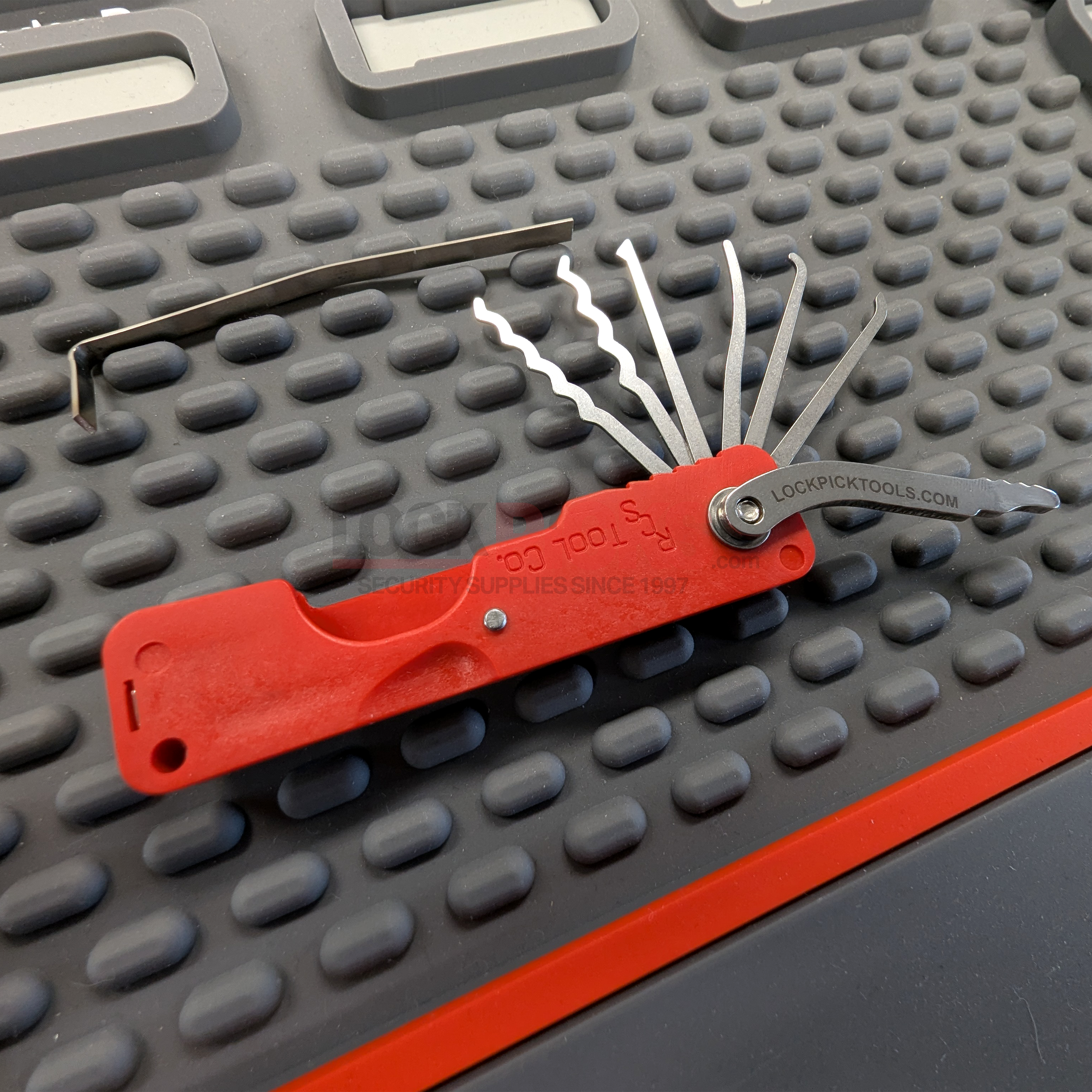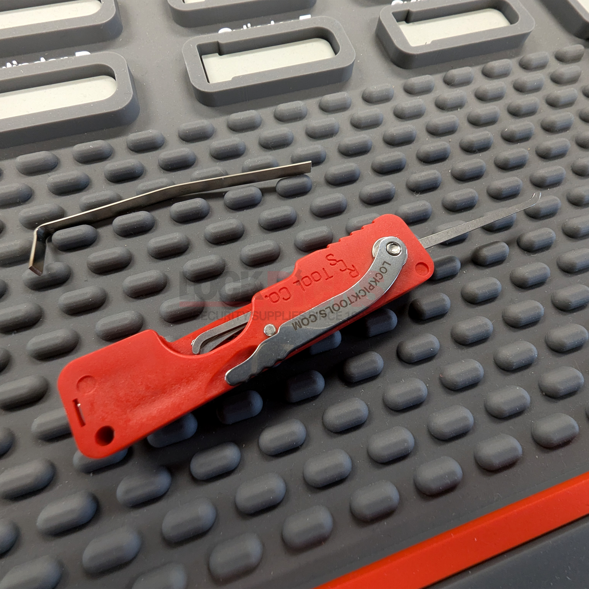 “The Responder” Jack Knife Folding Pick Set by RCS is designed for fast access, secure handling, and everyday portability. The locking lever lifts just 90 degrees, allowing the picks to swing out smoothly and lock firmly in place. Once tightened, the lever holds the picks solidly enough for confident use in any orientation, right side up or upside down.